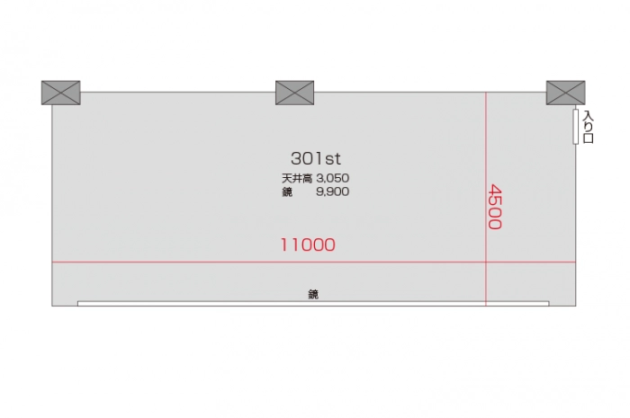 床面はリノリウムを採用し鏡面約10mの広々としたスタジオで。