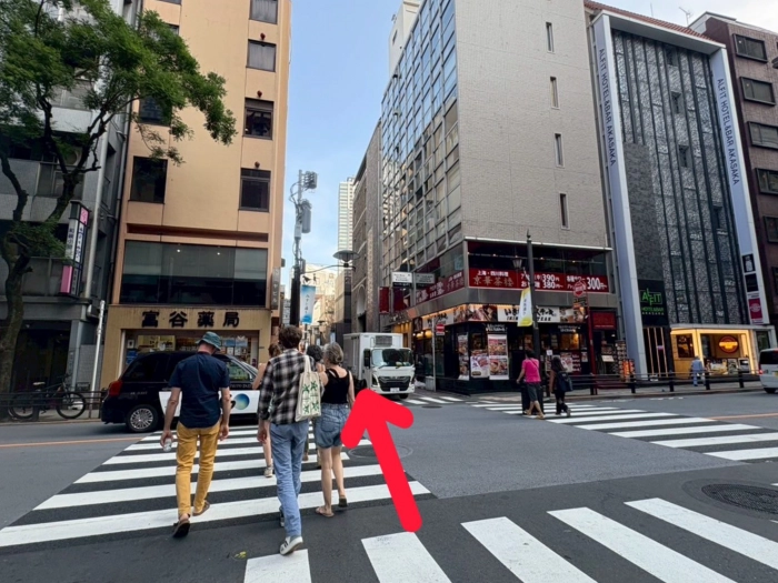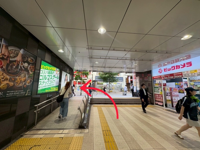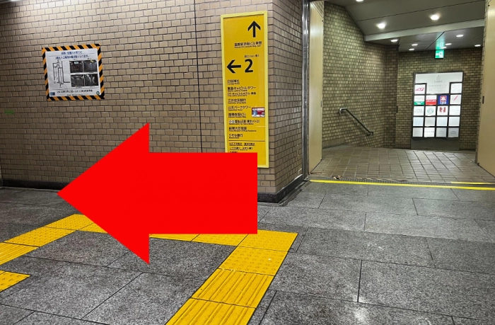 小さな階段を上がったら、「出口2」を目指して右折してください。