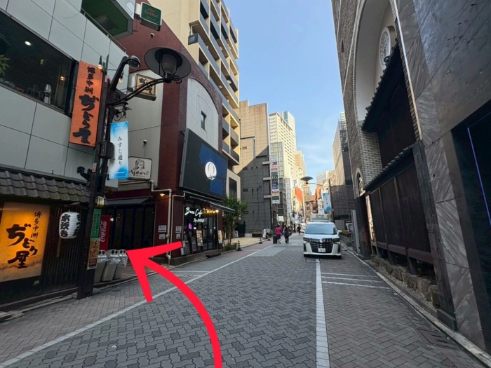 「ITAMAE SUSHI 赤坂店」の手前を右折します。