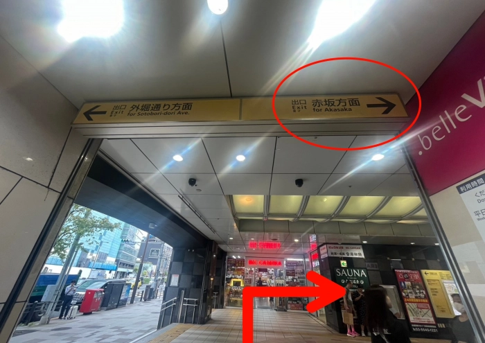出口 赤坂方面へ向かう