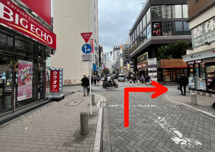 カラオケ「BIG ECHO」が見えたら右に曲がる