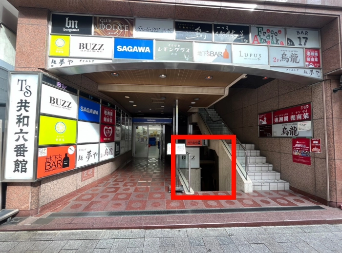 入口は階段から地下1階へ