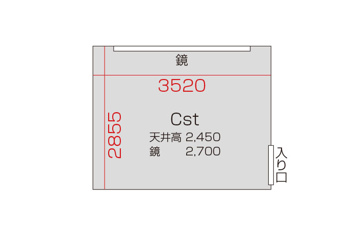 広さ 10.4㎡ 天井高 2.45m 鏡 3.5m