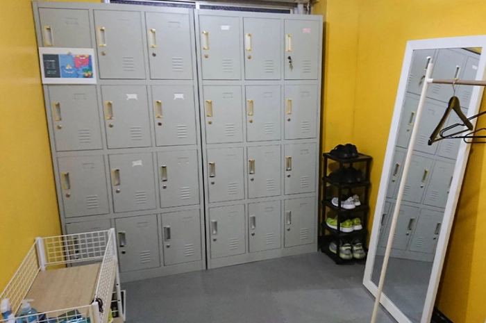スタジオの入口前で靴を脱いでいただき、電気を点けてお使いください。受付での手続きなどは一切ございません。
