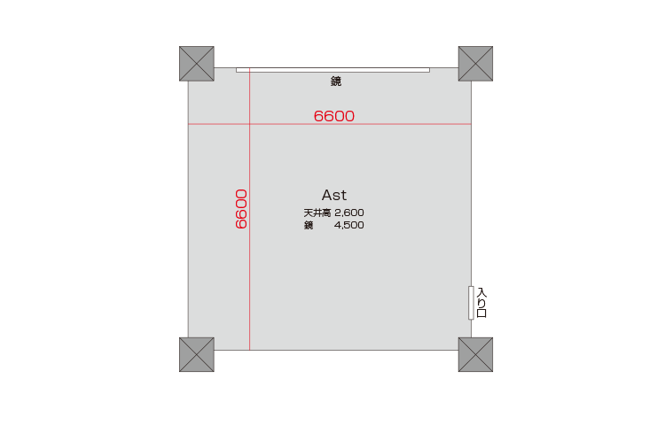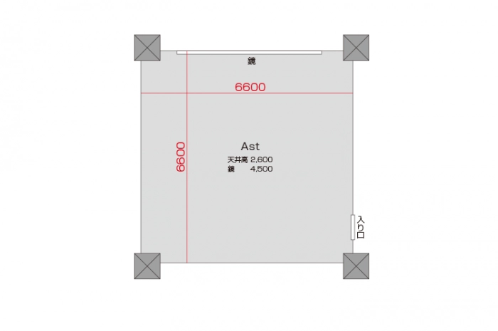 広さ 43.6㎡ 天井高 3.0m 鏡 5.5m