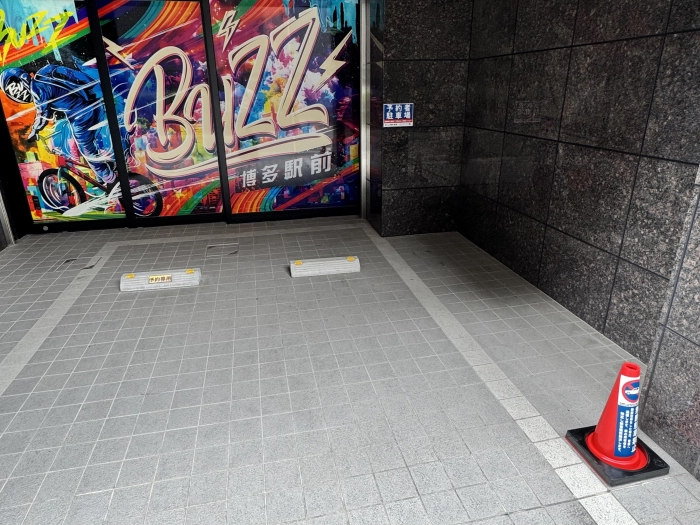 ※お支払方法※ ・オンライン決済 →ご予約時にご選択ください。 ・現金決済 →BUZZ博多駅前内の料金ボックスへお支払ください。 (封筒と明細の同封もお忘れなくお願いいたします) ※無断駐車対策のお願い 近頃、「非予約者」「外部の方」の無断駐車が増えております。 ご利用者様にはお手数おかけしますが、駐車時にコーンを避けてから駐車いただくようにお願いいたします。 ご利用後は元の位置にコーンをお戻しください。 予約いただいた方が確実に駐車場を利用できるようご協力のほどよろしくお願いいたします。 【店舗入口】 駐車場奥のラッピング部分が入口自動ドアになっています。 マンションのエントランスと入り口が別ですのでお間違えのないようお気をつけください。 【厳守】 ・ゴミの持ち帰り ・退室前の簡単な清掃 ・使用しない/早めに利用が終わった場合は忘れずにキャンセルする 皆様のご協力をお願いいたします。 【注意】 置き引きにご注意ください。 スタジオを離れる際は貴重品を肌身離さずお持ちください。 お客様のご理解とご協力をお願いいたします。 ※スタジオ内での盗難等については責任を負いかねます。