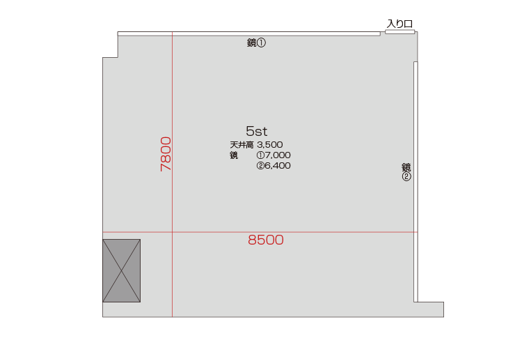 広さ 66.3㎡ 天井高 3.5m 鏡 7.0m