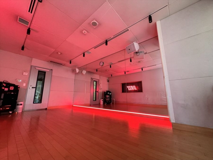 更衣室完備 完全防音 調光利用 大型スピーカー ◆ライトニング/ステレオミニプラグ対応 楽器利用可 フローリング マイク 丸椅子 LED照明 スマホスタンド