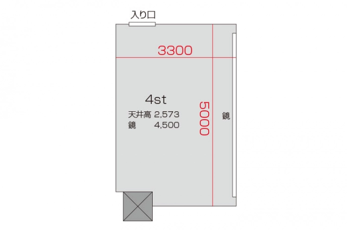 スタジオの入口前で靴を脱いでいただき、電気を点けてお使いください。受付での手続きなどは一切ございません。