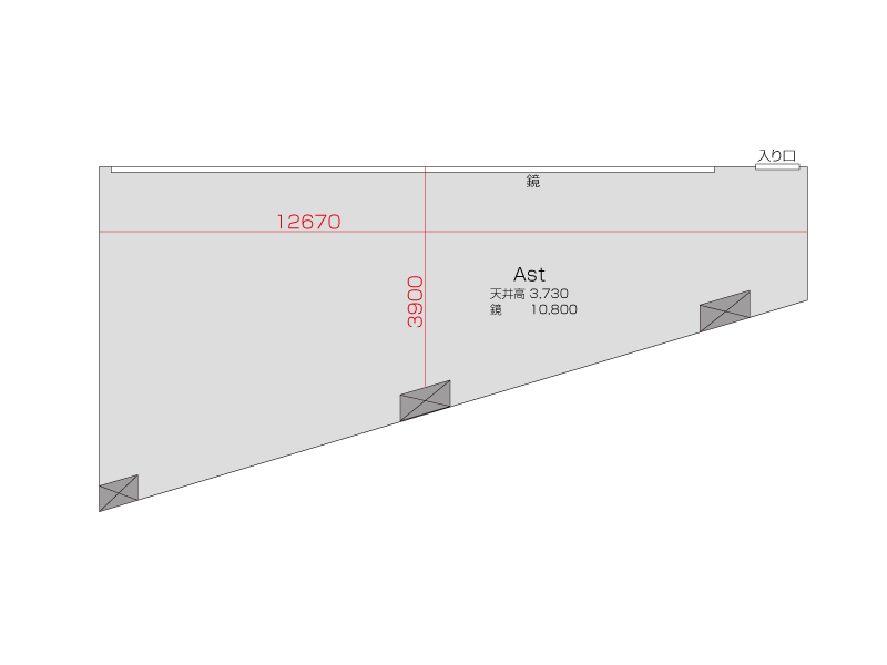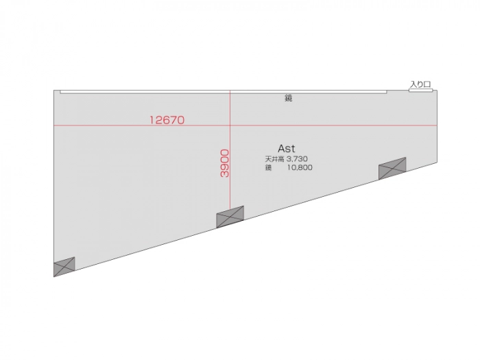 広さ 53.0㎡ 天井高 3.73m 鏡 10.8m
