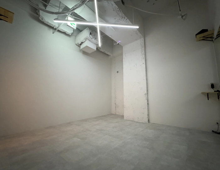 天井のクロスライトが印象的で、無機質ながらも洗練された雰囲気。