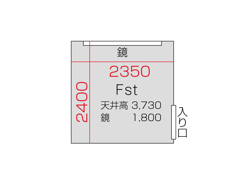 広さ 5.6㎡ 天井高 3.73m 鏡 1.8m