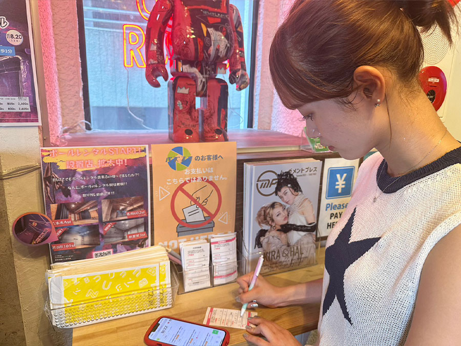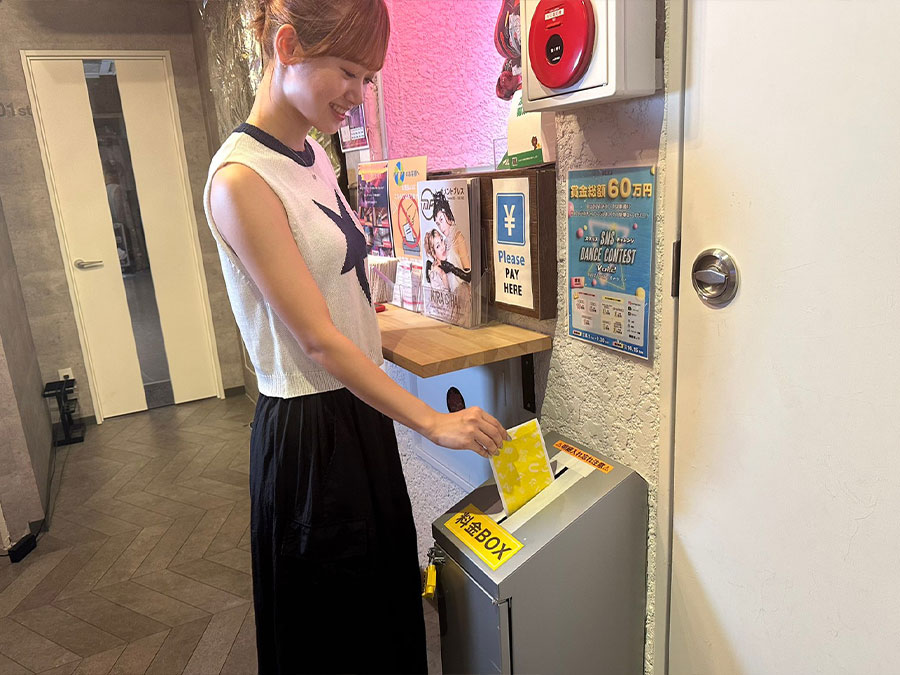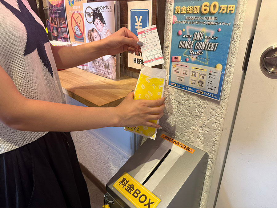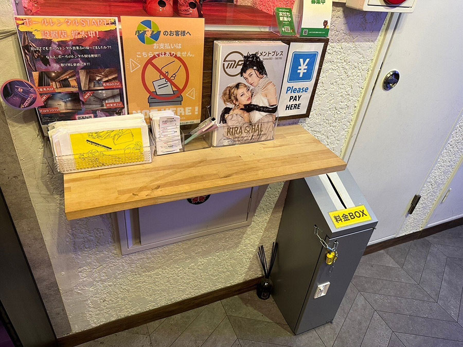 必ず利用明細書用紙にご予約内容を記入し、お釣りが不要となるよう現金と明細書を封筒に入れ、専用の料金BOXに投函してください。利用明細書用紙、封筒、ペンは店舗に用意してあります。※現金決済の場合は、事前にお釣りが不要となるようご準備をお願いします。
