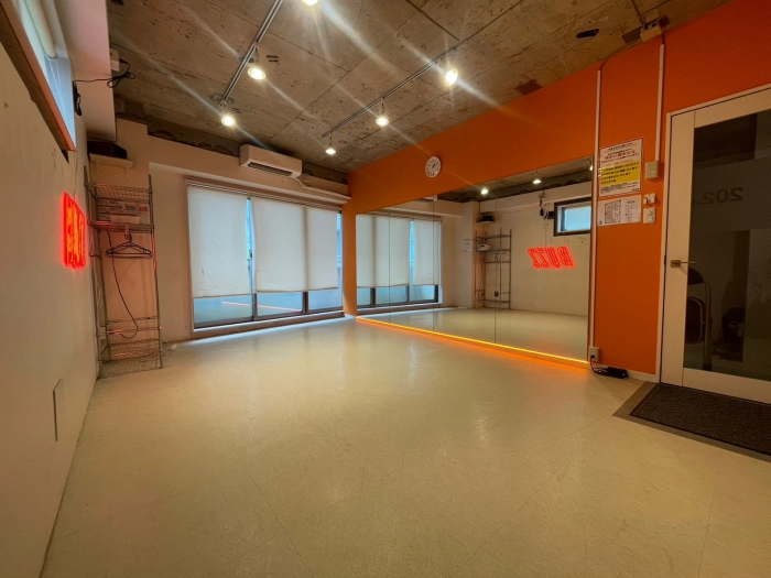 スタジオの入口前で靴を脱いでいただき、電気を点けてお使いください。受付での手続きなどは一切ございません。