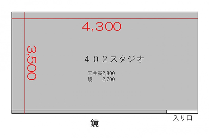 スタジオの入口前で靴を脱いでいただき、電気を点けてお使いください。受付での手続きなどは一切ございません。