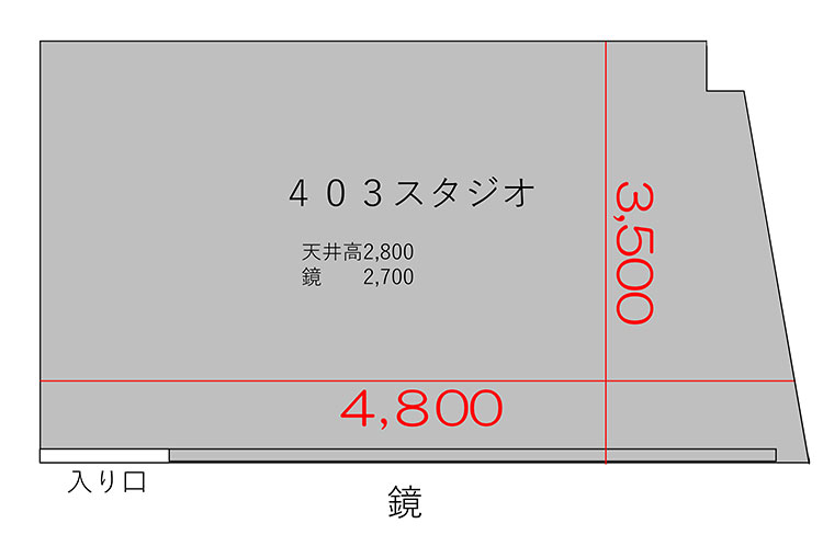 スタジオの入口前で靴を脱いでいただき、電気を点けてお使いください。受付での手続きなどは一切ございません。