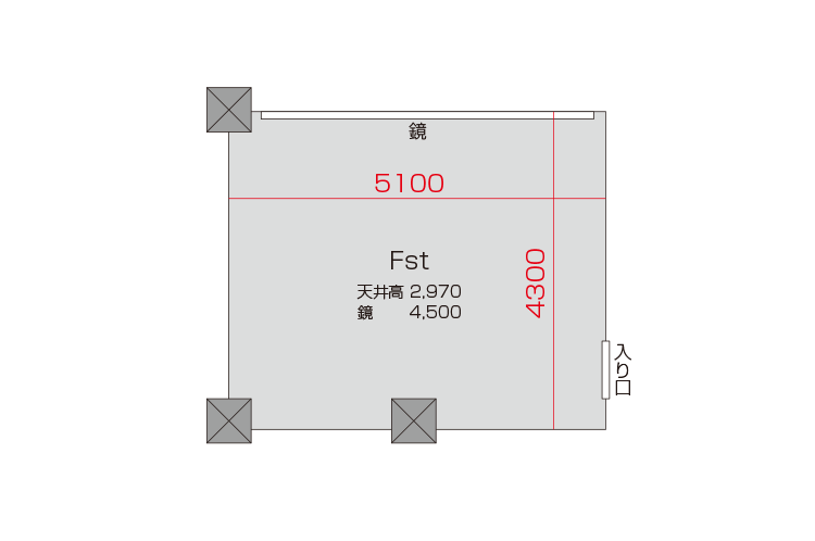 スタジオの入口前で靴を脱いでいただき、電気を点けてお使いください。受付での手続きなどは一切ございません。