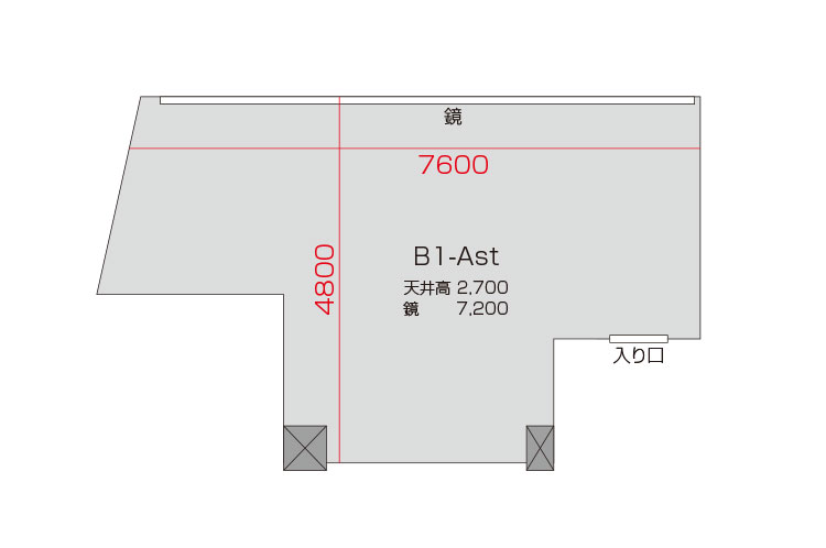 広さ 37.0㎡ 天井高 2.7m 鏡 7.2m