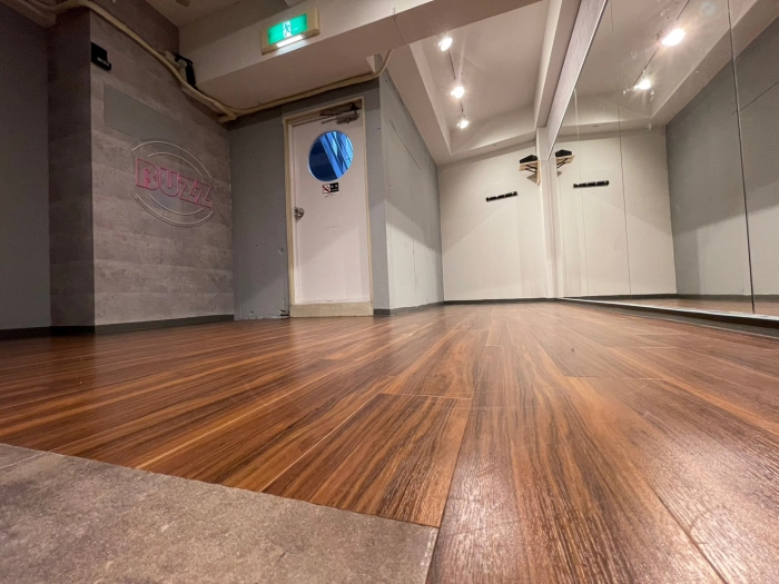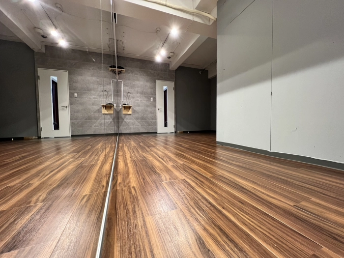 鏡面5.4mで、3〜5名ほどの少人数レッスンに最適です。