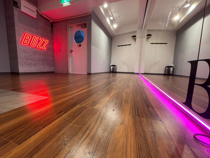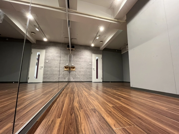 鏡面5.4mで、3〜5名ほどの少人数レッスンに最適です。