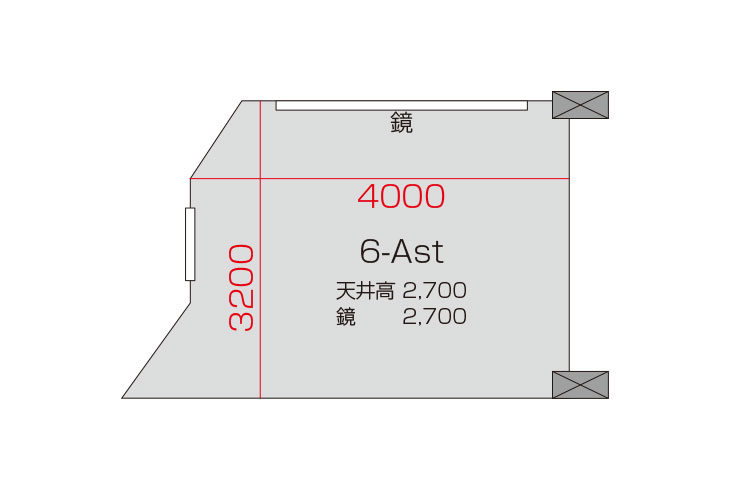 広さ 12.5㎡ 天井高 2.7m 鏡 2.7m