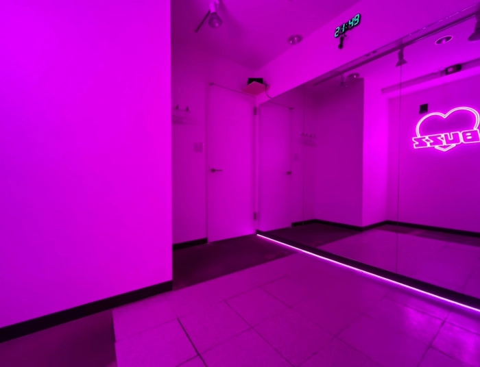 更衣室完備 調光利用 ◆ライトニング/ステレオミニプラグ対応 丸椅子 スマホスタンド 個室エアコン完備