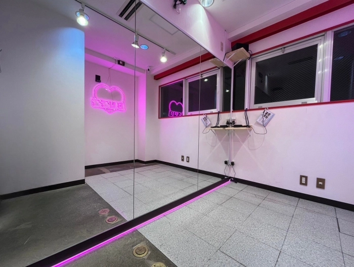 スタジオの入口前で靴を脱いでいただき、電気を点けてお使いください。受付での手続きなどは一切ございません。