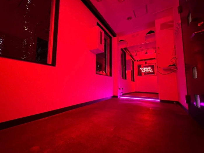 更衣室完備 調光利用 ◆ライトニング/ステレオミニプラグ対応 丸椅子 スマホスタンド 個室エアコン完備