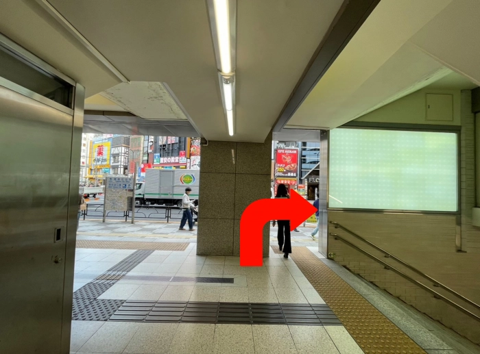 地上へ出たら、しばらくまっすぐ右に進む