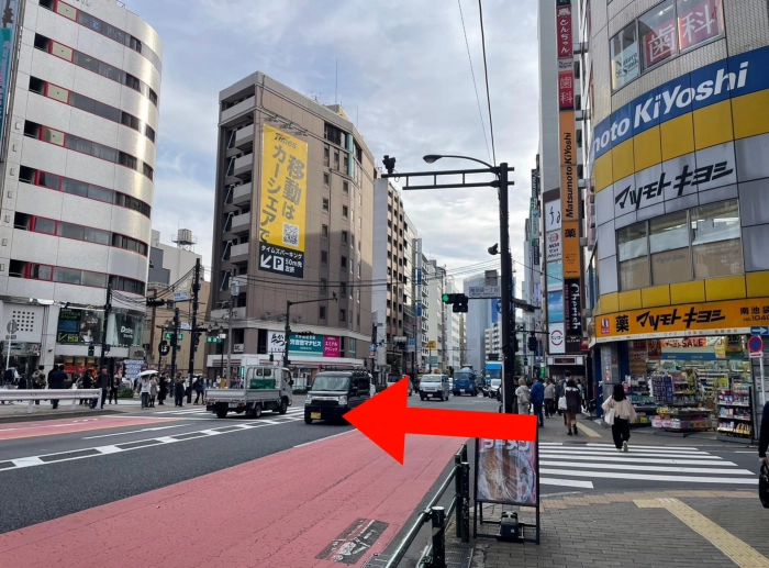 マツモトキヨシが見えたら、左の横断歩道を渡る