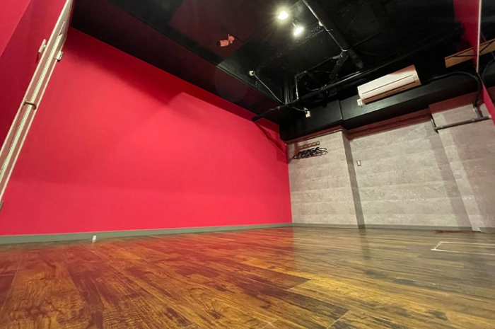 スタジオの入口前で靴を脱いでいただき、電気を点けてお使いください。受付での手続きなどは一切ございません。