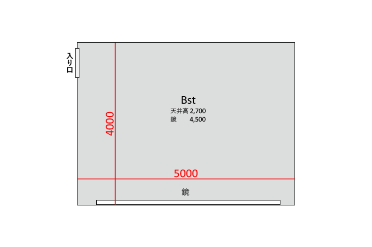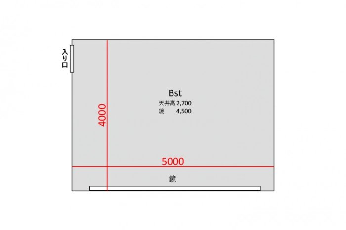 広さ 20.0㎡ 天井高 2.7m 鏡 4.5m