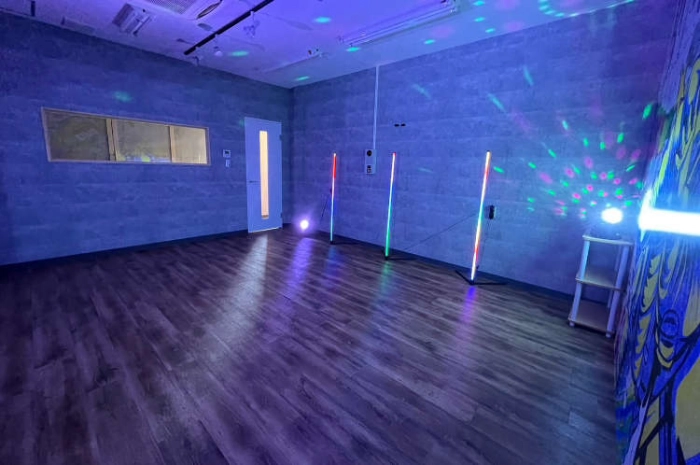 スタジオの入口前で靴を脱いでいただき、電気を点けてお使いください。受付での手続きなどは一切ございません。