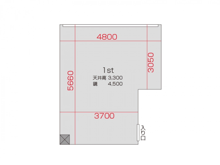 広さ 24.0㎡ 天井高 3.3m 鏡 3.6m