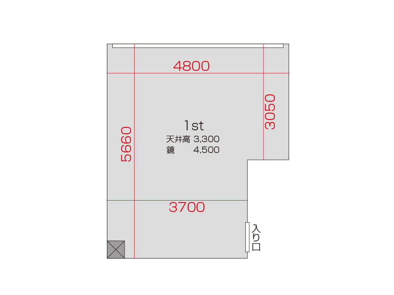 広さ 24.0㎡ 天井高 3.3m 鏡 3.6m