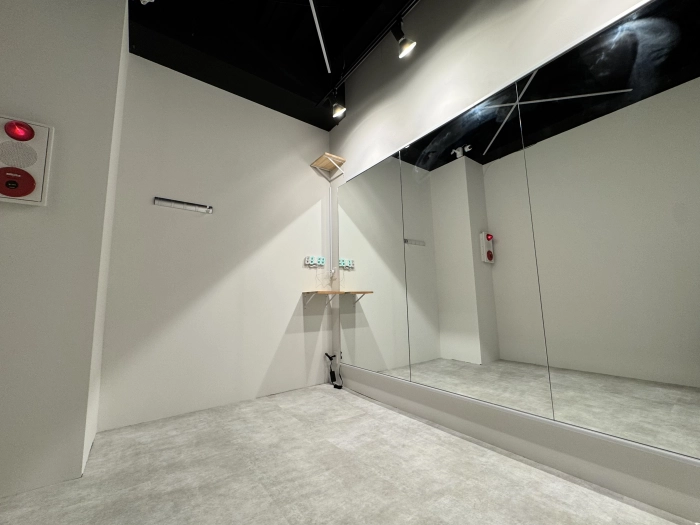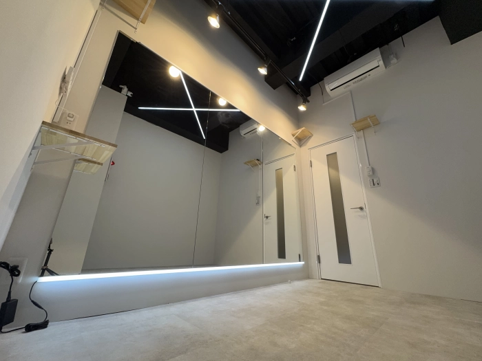 スタジオの入口前で靴を脱いでいただき、電気を点けてお使いください。受付での手続きなどは一切ございません。