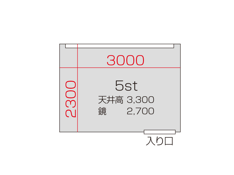 広さ 6.6㎡ 天井高 3.3m 鏡 2.7m
