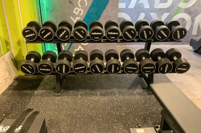 ウレタンダンベル12.5~22.5kg、クロームダンベル1~10kg使用可能。