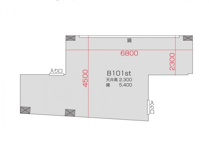 広さ 24.0㎡ 天井高 2.3m 鏡 5.4m