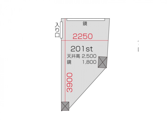 広さ 7.2㎡ 天井高 2.5m 鏡 1.8m