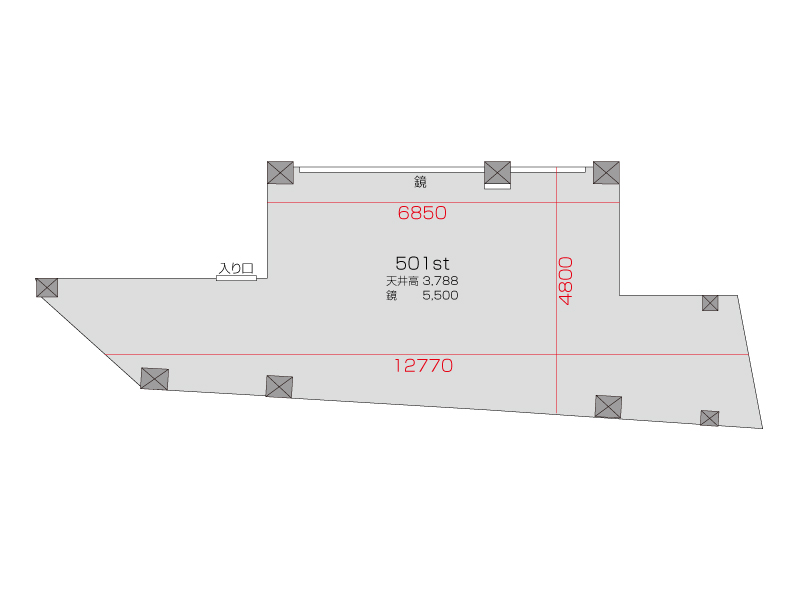広さ 45.5㎡ 天井高 3.788m 鏡 5.5m