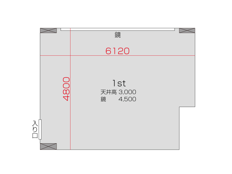 広さ 27.5㎡ 天井高 3m 鏡 4.5m