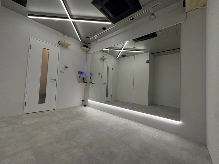 スタジオの入口前で靴を脱いでいただき、電気を点けてお使いください。受付での手続きなどは一切ございません。