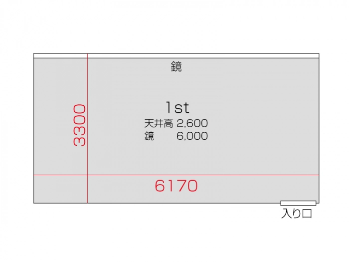 広さ 22.8㎡ 天井高 2.6m 鏡 6.0m
