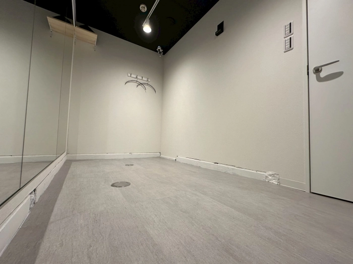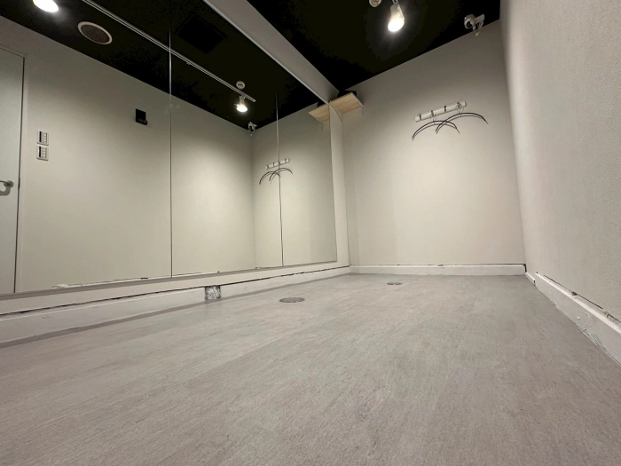 スタジオの入口前で靴を脱いでいただき、電気を点けてお使いください。受付での手続きなどは一切ございません。