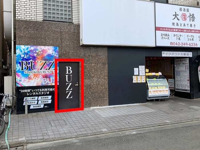 徒歩1分程の1階が居酒屋「大吾」さんのビルの地下1階がBUZZ西国分寺です。