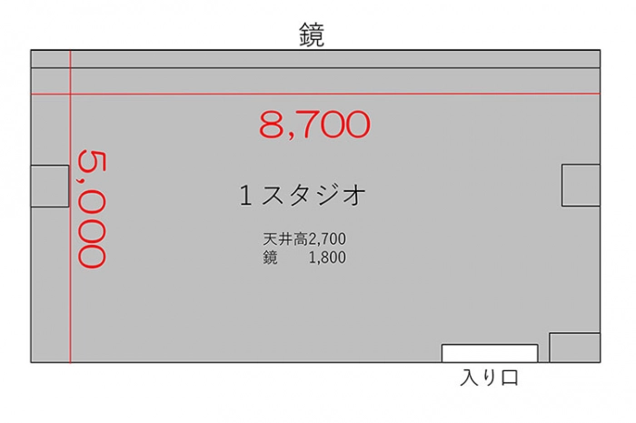 スタジオの入口前で靴を脱いでいただき、電気を点けてお使いください。受付での手続きなどは一切ございません。