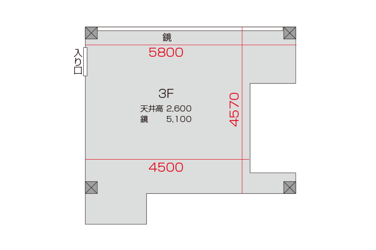 2Fスタジオ広さ26.5㎡