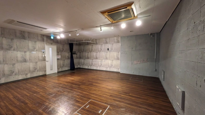 正方形に近い形のスタジオ。ダンスレッスンやリハーサルはもちろん、ワークショップなどにもお勧めです。