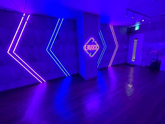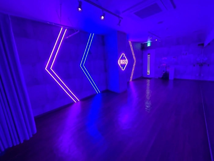 コンクリート調の壁に映えるLED背景は"踊ってみた"動画の配信などに最適!
